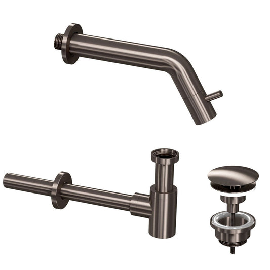 INK fonteinkraan wandmontage inclusief bekersifon en afvoerplug gun metal black