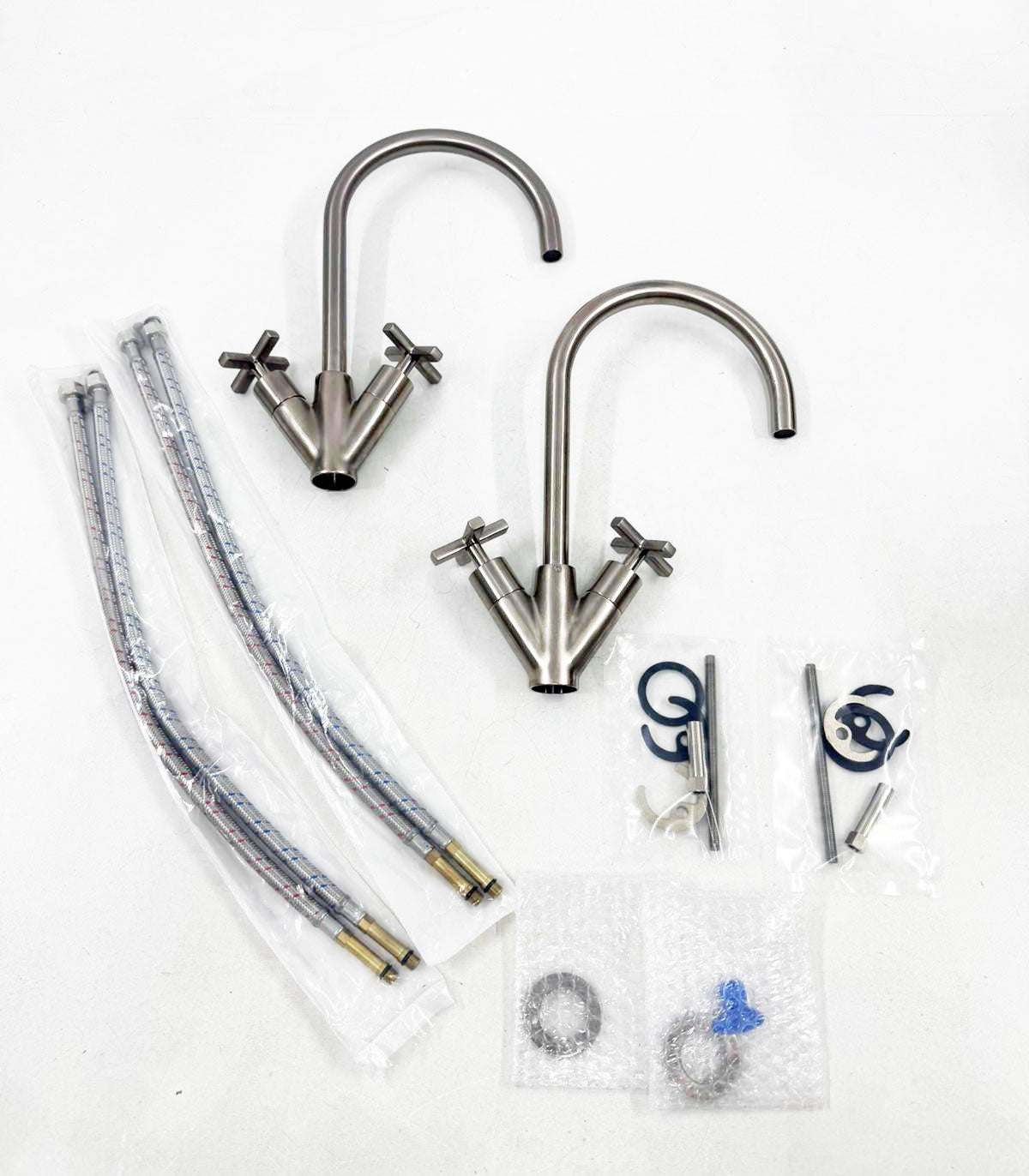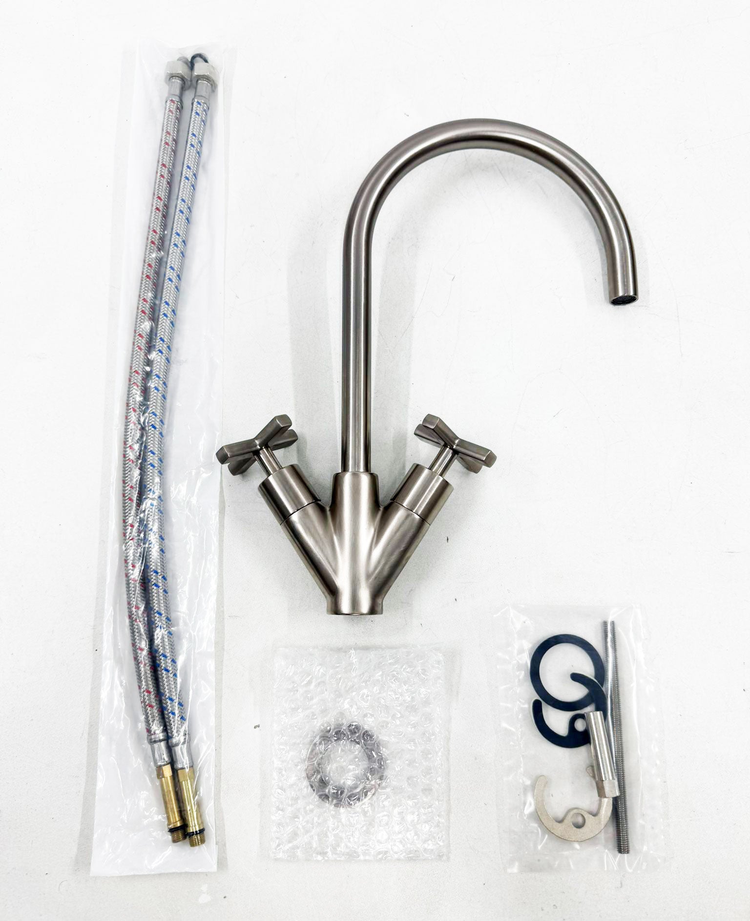 2 X Treemme Basetta Line met kruisgrepen hoge design wastafelkranen geborsteld nikkel