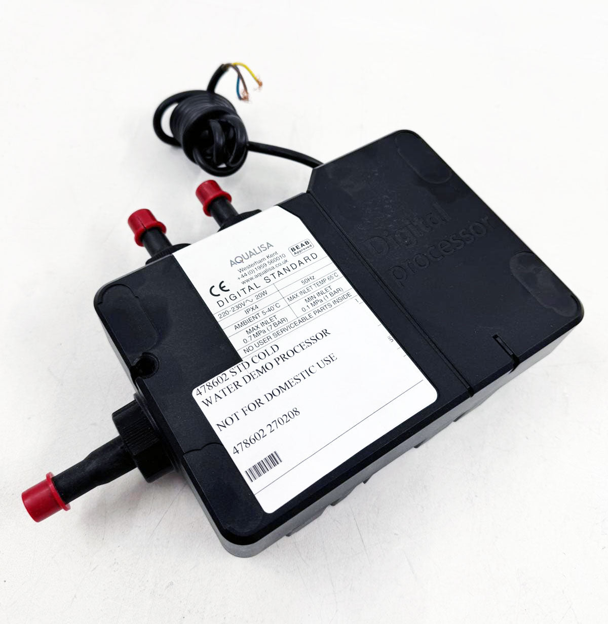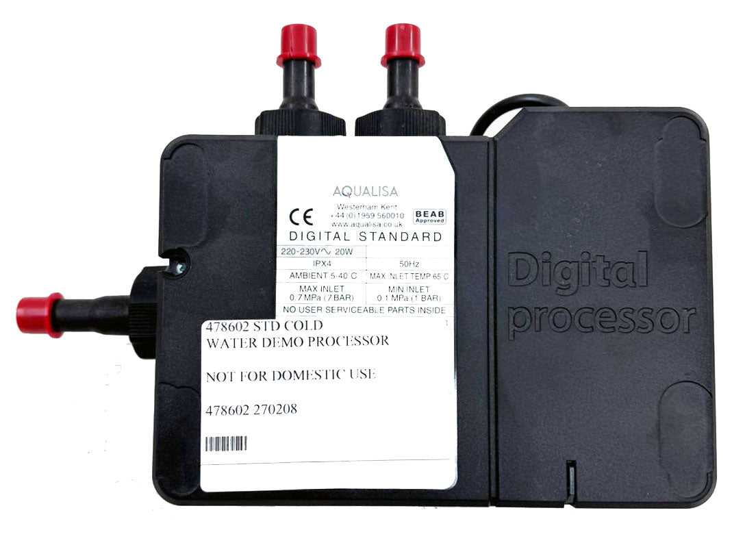 Het hart van iLux is de digitale processorbox. Zodra de keuze voor bad of douche is gemaakt, stromen warm en koud water naar de processor, waar ze met thermostatische precisie worden gemengd. Daarna stroomt het water door naar de baduitloop of douchekop, op de door de gebruiker geselecteerde temperatuur en waterdruk.