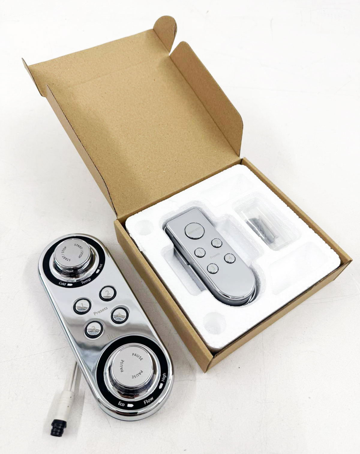 Plaatsing van de processor: De processorbox is slank, compact en kleiner dan een schoenendoos. Hij weerspiegelt de unieke kenmerken van elke badkamer en biedt de flexibiliteit om hem gemakkelijk te plaatsen, weg van de douche of het bad, op een gemakkelijk bereikbare locatie: onder het bad, op zolder, in een droogkast, de keuze is aan u.