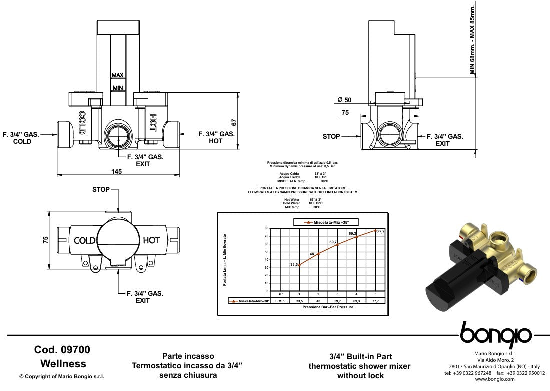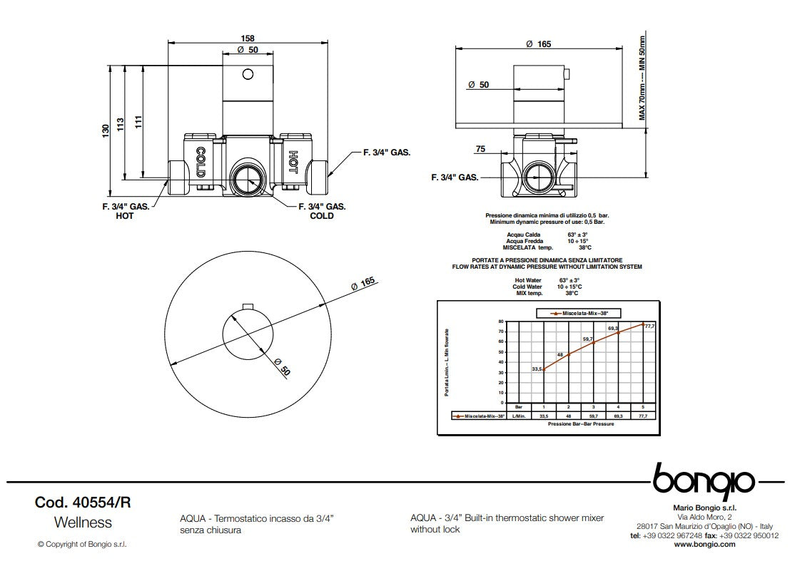 1 x Centraal thermostaat 3/4''