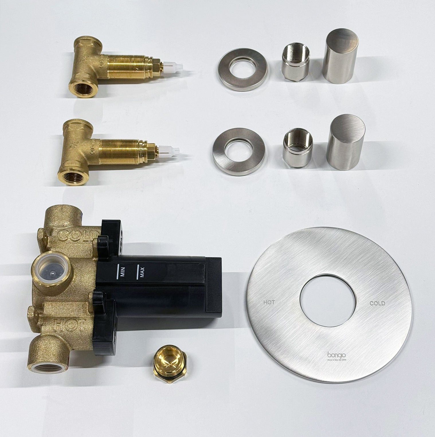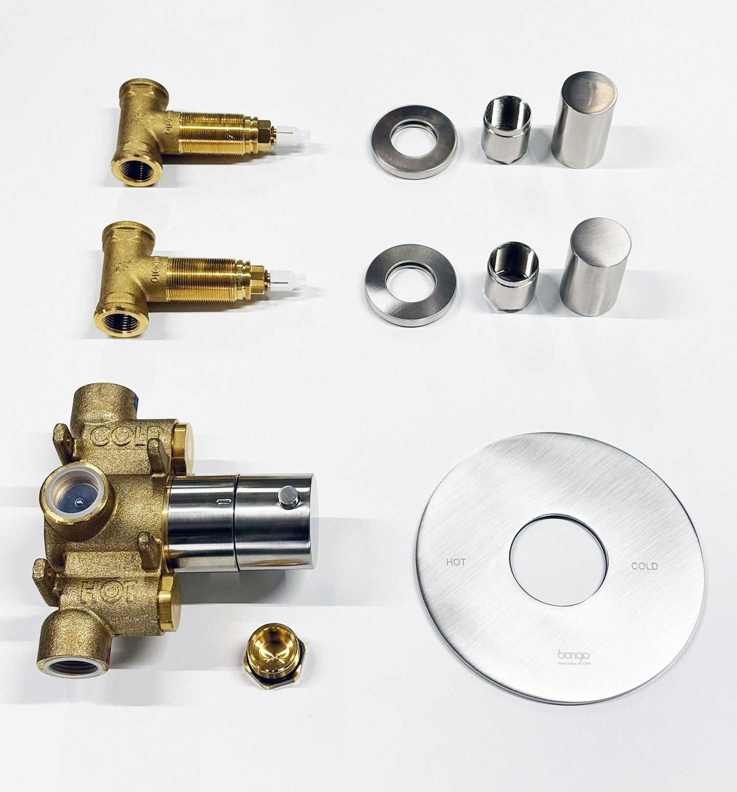 Bongio Squadra, Aqua inbouw centraal thermostaatkraan incl. twee inbouw stopkranen, Geborsteld mat nikkel