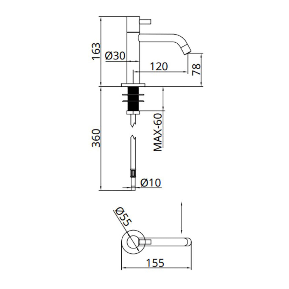 Deze uitvoering is geschikt voor alleen koud water en ideaal voor gebruik bij fonteinen of compacte wastafels.