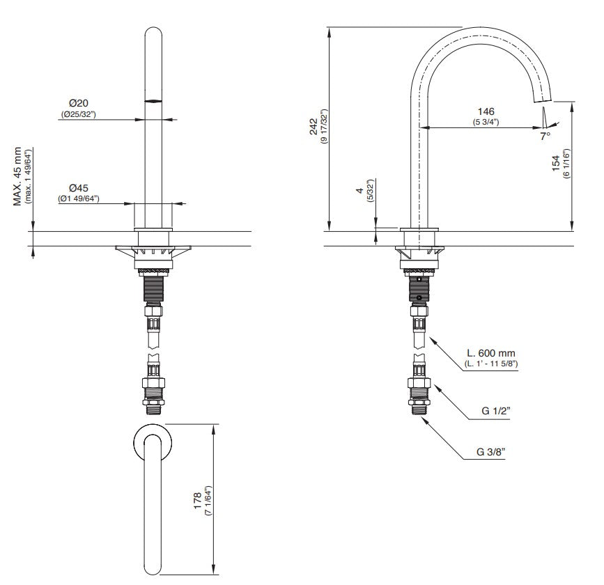 CEADESIGN Dekgemonteerde draaibare uitloop met optionele onderbladbevestiging, geborsteld brons