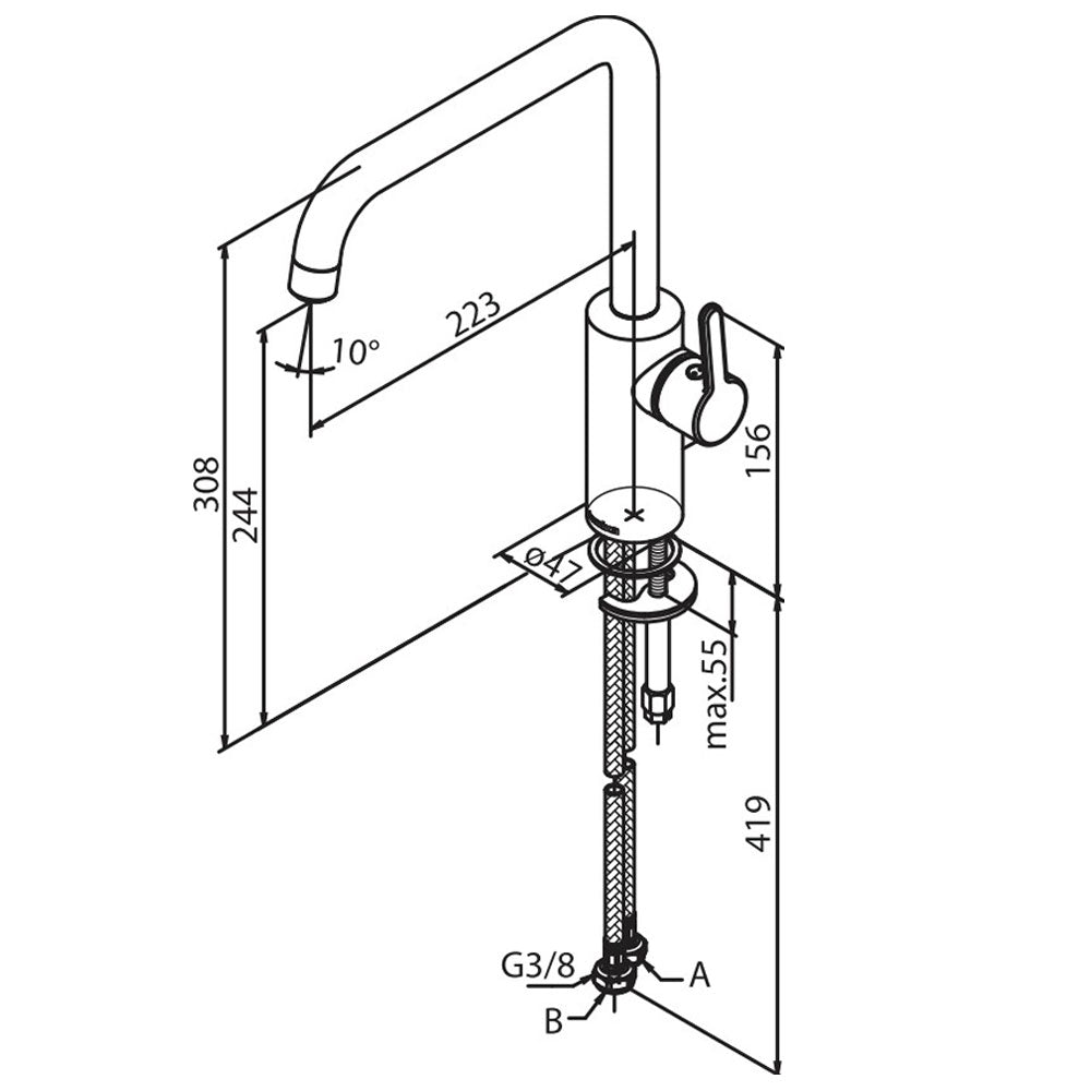 Diepte uitloop: 223 mm