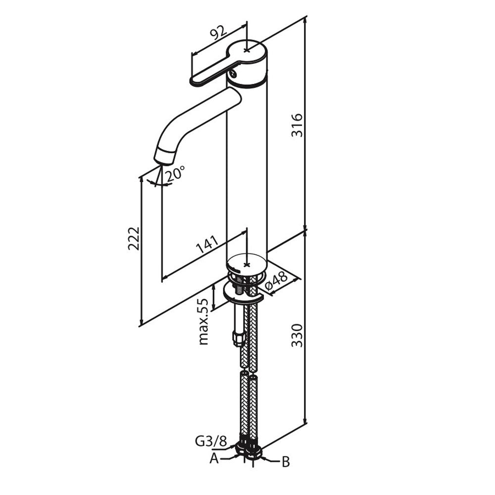 Damixa Silhouet hoge wastafelkraan geschikt voor waskom. chroom