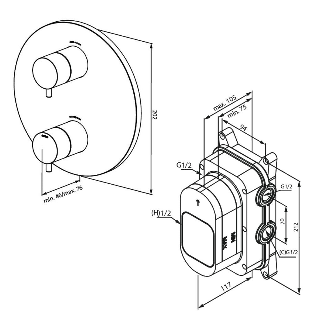 Damixa Silhouet inbouw thermostaat douchekraan inbouw + afbouwdeel met omstel, Staal