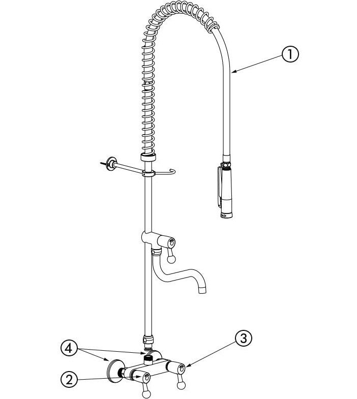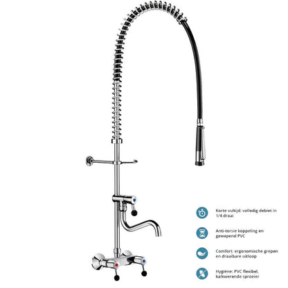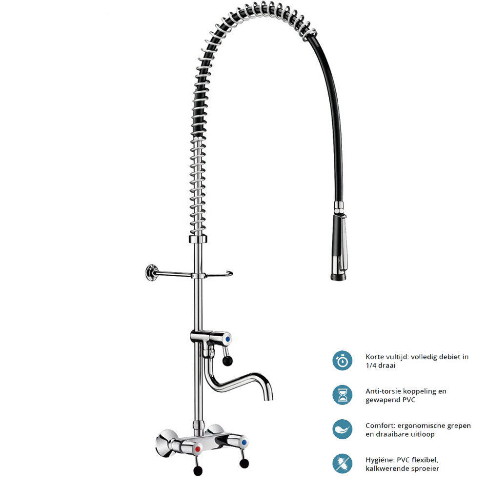 Volledige voorspoeldouche met tapkraan, geschikt voor intensief gebruik in professionele keukens