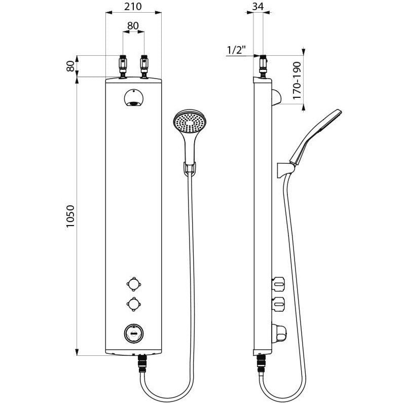 Hoogte 1.050 mm, Diepte: 65 mm, Breedte: 210 mm
