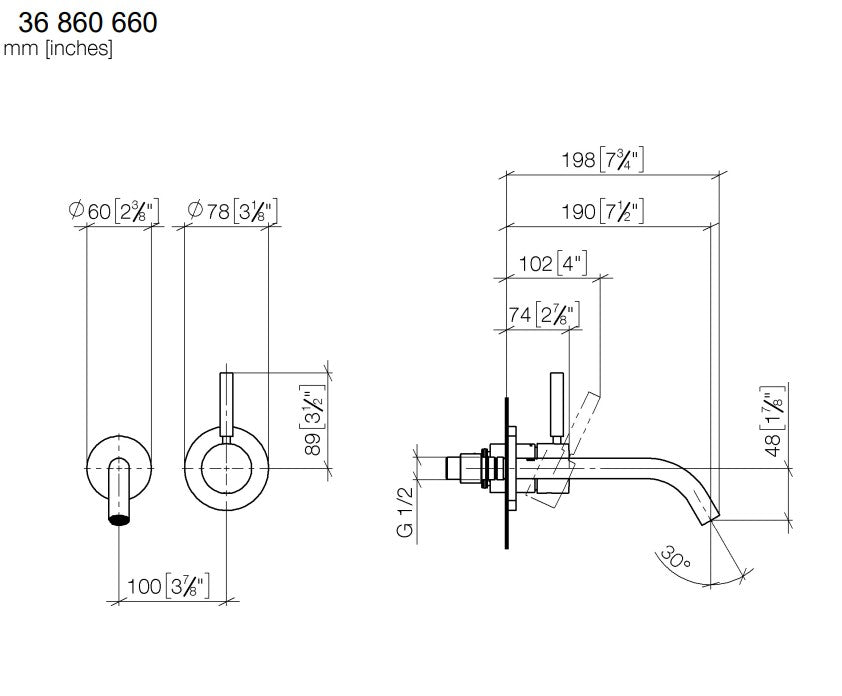 Dornbracht Meta 2-gats wand wastafelmengkraan met rozetten, Champagne 22kt