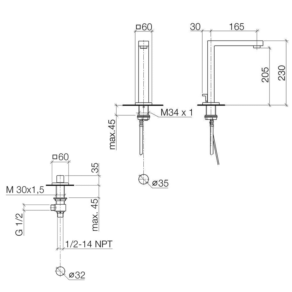 Dornbracht Symetrics 3-gats wastafelkraan 165 mm met waste chroom