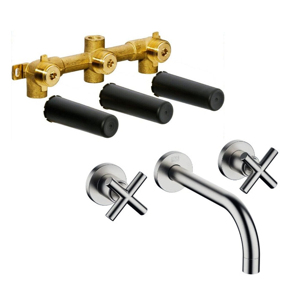 Dornbracht Tara tweegreeps 3-gats wandmengkraan sprong 200 mm platina mat