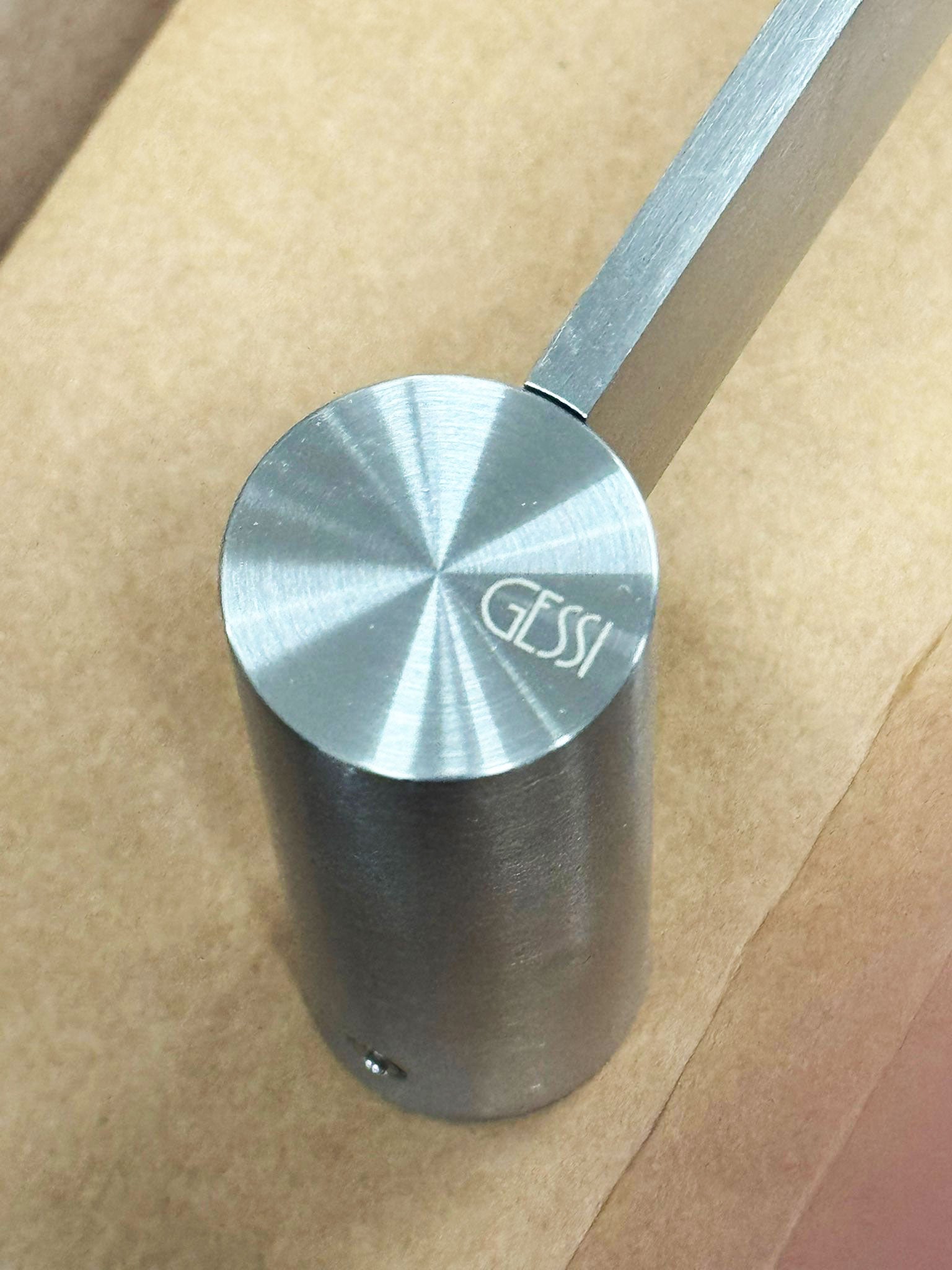 Gessi 316 Glijstang met antikalk-handdouche, 1,50 m flexibele slang en wateraansluiting gebosrsteld RVS