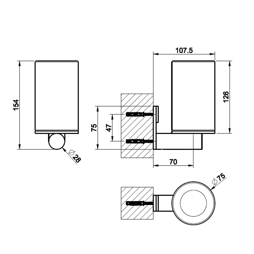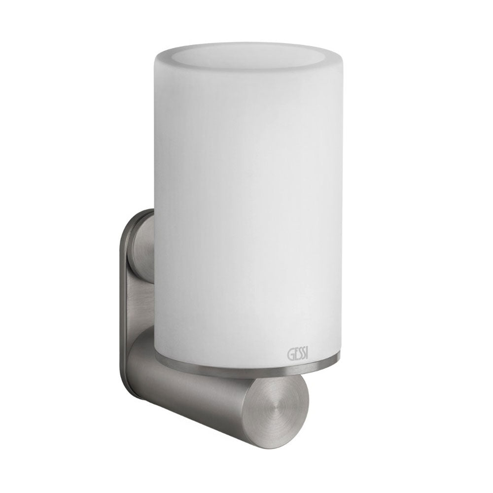 Gessi 316 wandgemonteerde houder met vaste beker wit, geborsteld staal