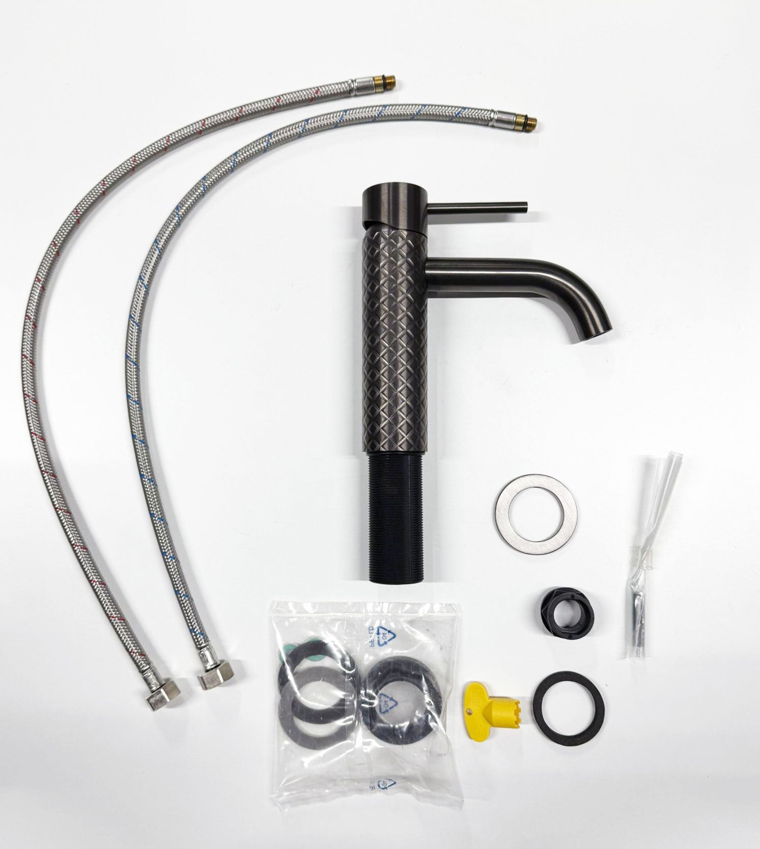Met geborsteld zwart metaal PVD afwerking is er een zeer chique wastafelmengkraan ontstaan. Oogt immers stijlvol en exclusief een sieraad in uw badkamer. Met deze Intreccio afwerking vallen gegarandeerd veel monden open van verbazing.