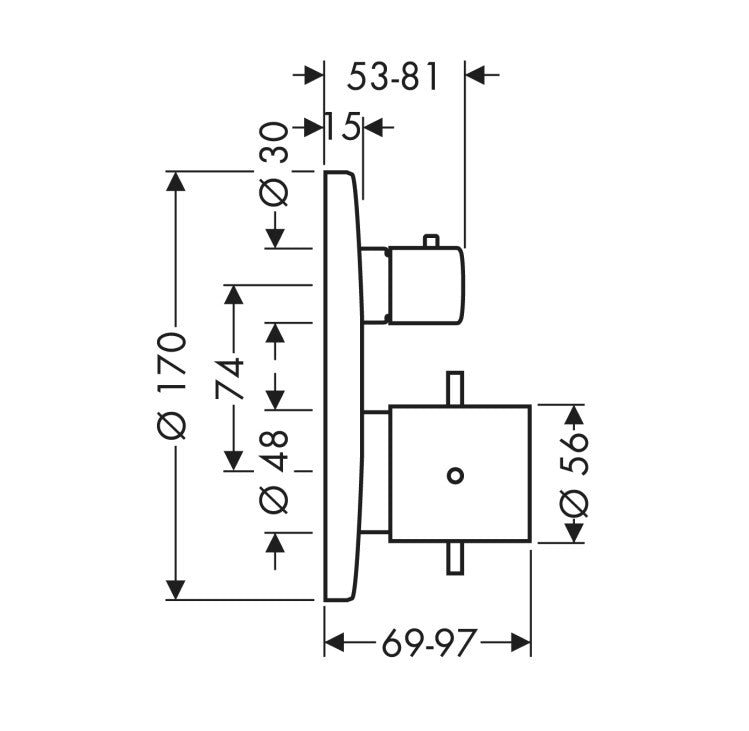 Hansgrohe AXOR Starck thermostaat afbouwdeel met stopkraan, geborsteld chroom zwart