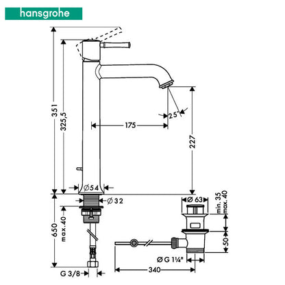 Hansgrohe Talis Classic hoge wastafelkraan 230 met afvoergarnituur met een trekstang chroom
