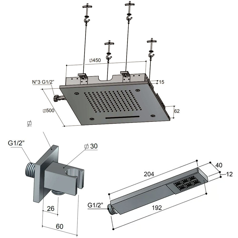 Regendouche M142 Dualflow 50x50cm hoofddouche met regendouche en waterval functie geborsteld nikkel (showmodel)