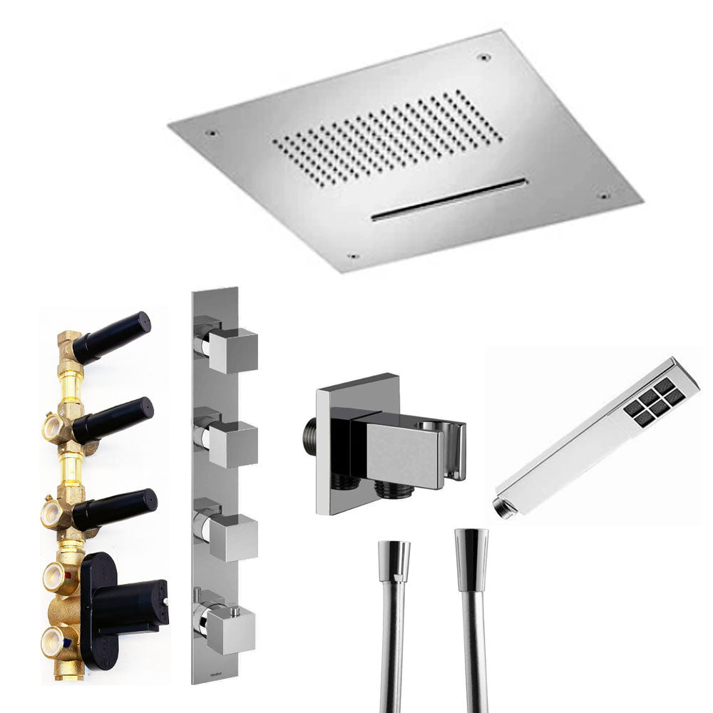 Luxe complete doucheset inclusief alle inbouwdelen. Met 3 stopkranen kunt u kiezen tussen de hoofddouche, handdouche of waterval functie of alles tegelijkertijd.