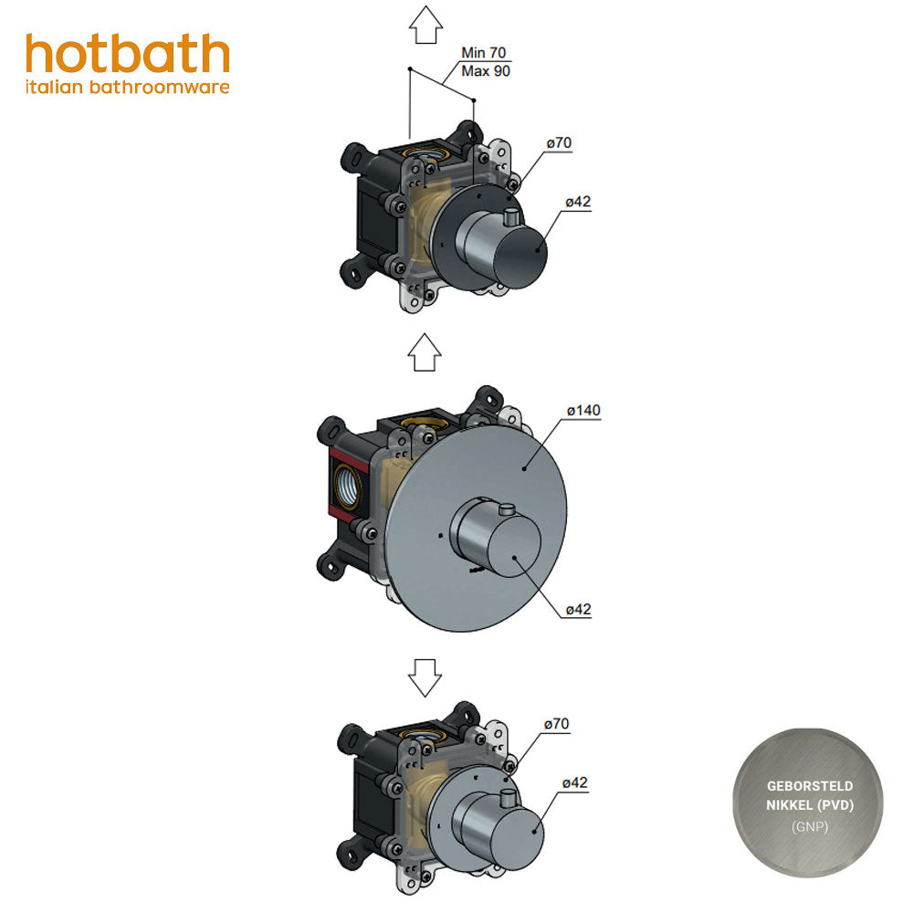 Hotbath Buddy B007EXT afbouwdelen voor inbouw thermostaat met 2 stopkranen geborsteld nikkel (2022)