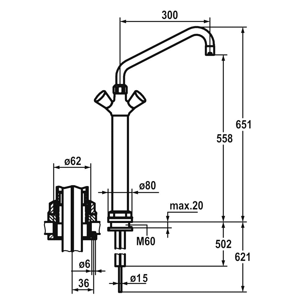 KWC GASTRO A300 2-greeps professionele verhoogd grootkeuken mengkraan