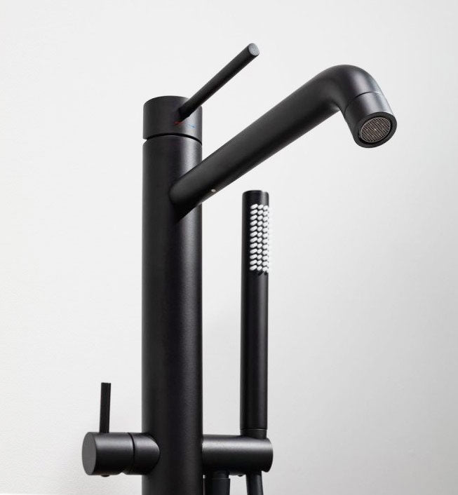 Paffoni Light Vrijstaande bad/douchemengkraan met omsteller en handdouche (inclusief inbouwdeel art. LIG030) mat zwart