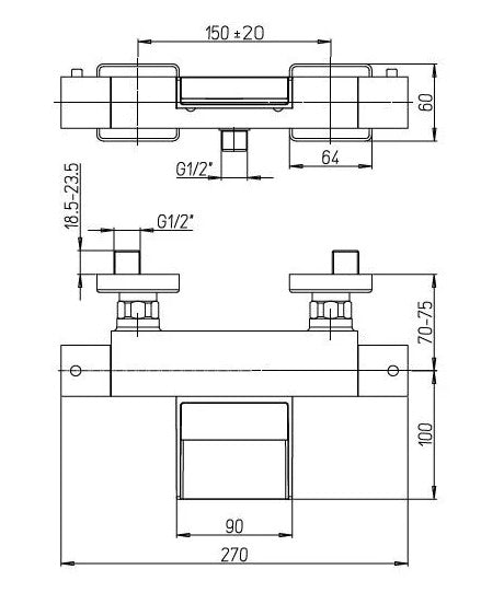 Paini Nexxt Dax design thermostaat badmengkraan met waterval / cascade, chroom