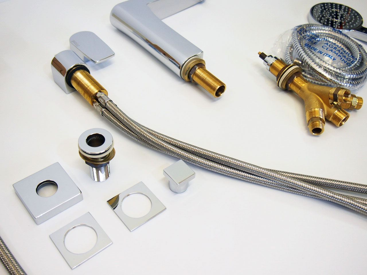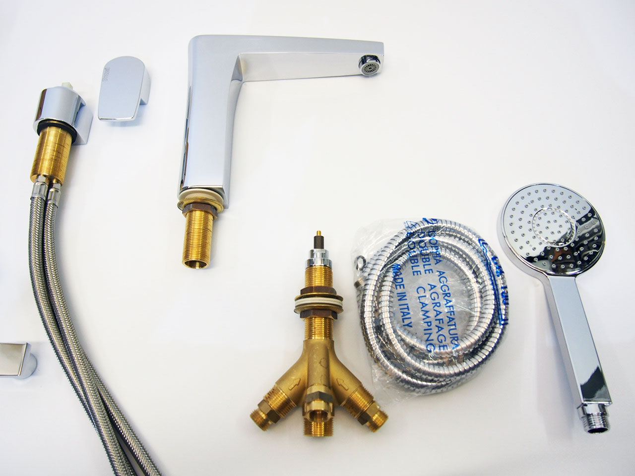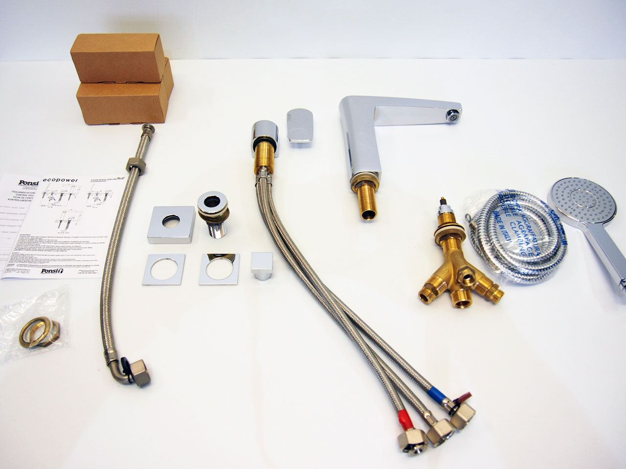 Wordt compleet geleverd met alle aansluitingen, design handdouche en slang met keramische binnenwerken