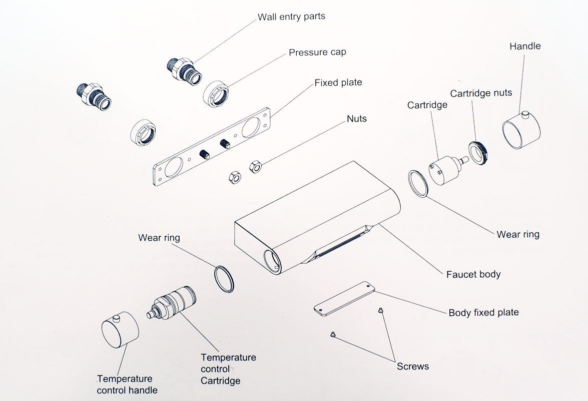 Buitenkant van de thermostaatkraan wordt niet warmer dan de ingestelde temperatuur