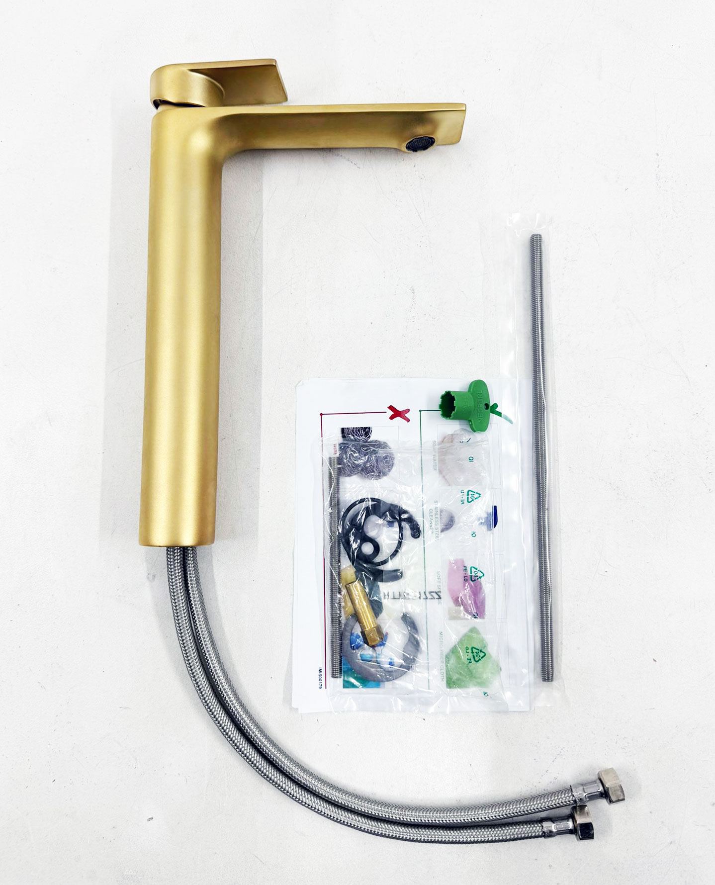 Treemme Ran highriser design wastafelkraan hoog model mat goud PVD