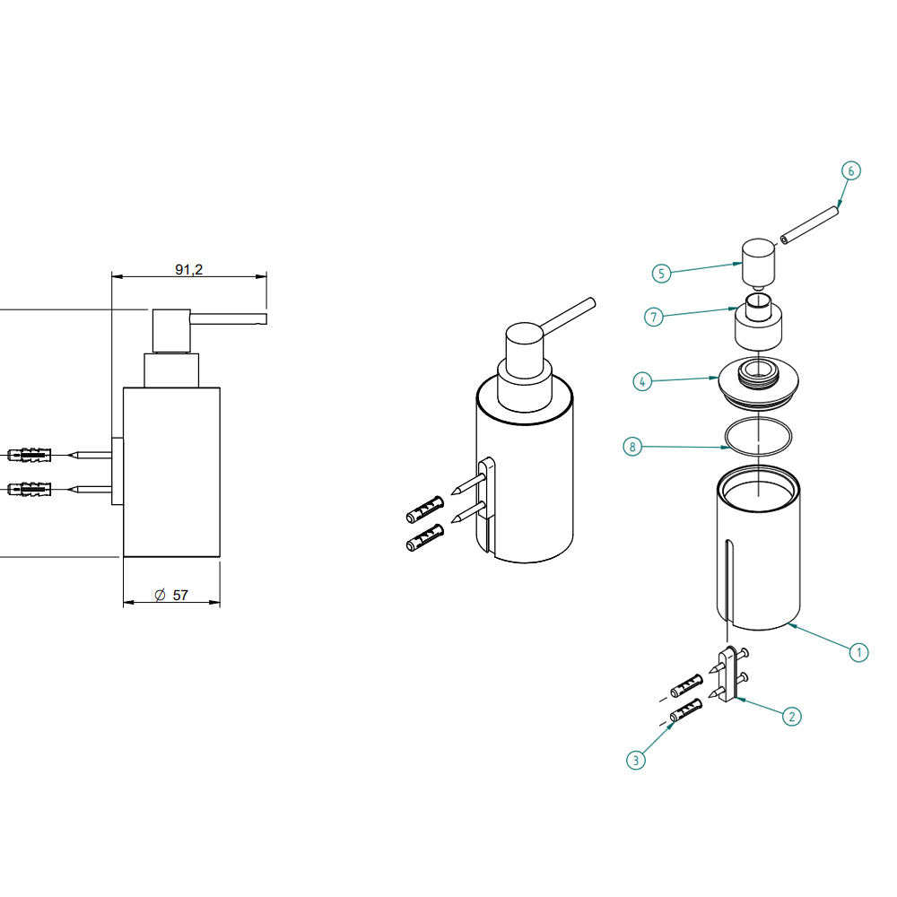 Treemme Tag zeep lotion dispenser wandmontage mat nikkel