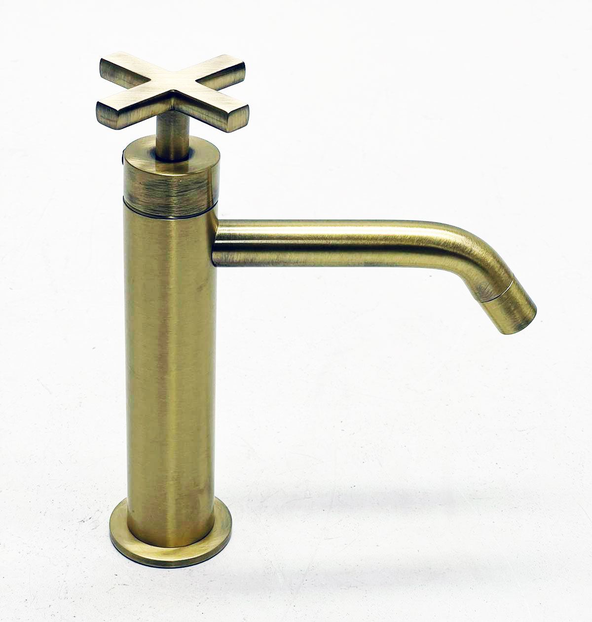 VTwonen Cross design wastafelkraan met kruisgreep brons
