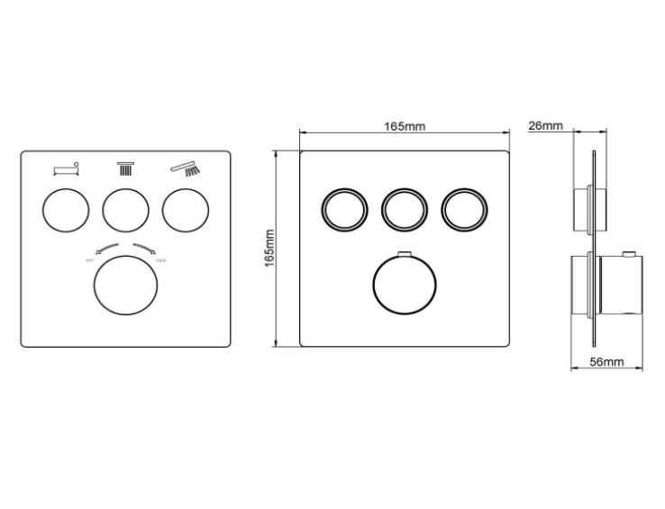 Wiesbaden Caral Klik afbouwdeel 3-weg thermostatisch staal