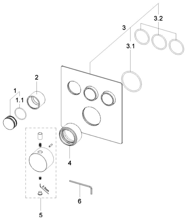 Wiesbaden Caral Klik 3-weg thermostatische afbouwset, RVS