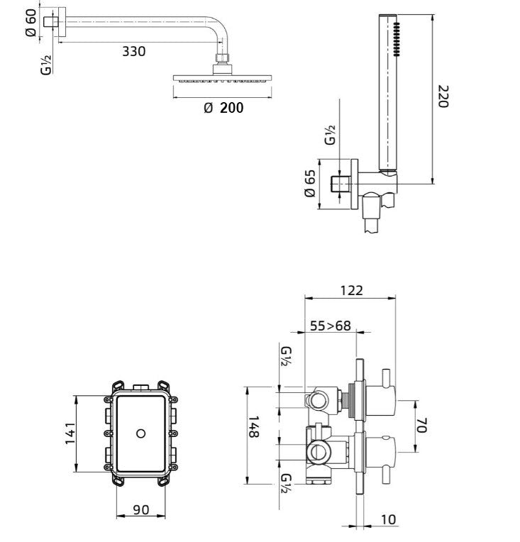Xenz Deuro Douche Inbouwset met Thermostaat incl.Tec-Box – Grafiet